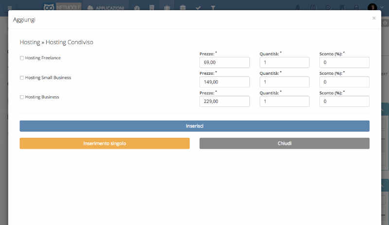 Dovrai soltanto selezionare uno o più prodotti/servizi da inserire nella proposta, scegliere un modello di documento fra quelli caricati e compilare eventuali dati aggiuntivi. Il sistema genererà un documento Word precompilato con tutti i dati del cliente.